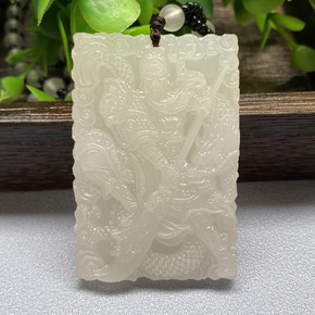 新款阿富汗白玉大刀关公吊坠男女款方牌子直播会销礼品...