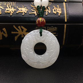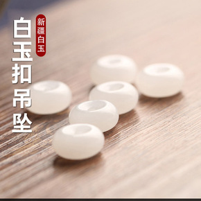 厂家批发羊脂白玉平安扣吊坠 3CM新疆金丝玉吊坠可...