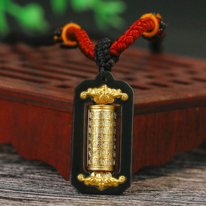 金镶玉和田玉墨玉足金观音佛吊坠挂玻璃镜面墨玉男女款...