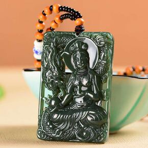 和田玉青玉降龙观音吊坠男款双面雕刻挂件 新疆和田玉...