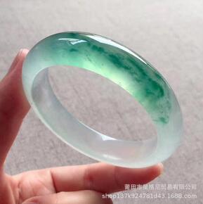缅甸浅绿玉手镯玉镯冰种玉石镯子翡翠少女...