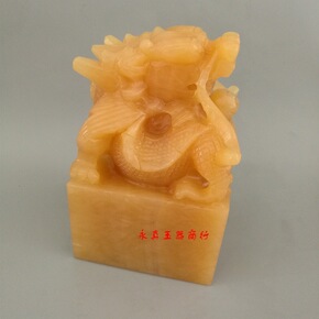 玉龙坊实力商家供应厂家直销6公分单龙米黄玉玉玺印章...