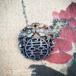 仿古做旧双喜临门吊坠 岫玉挂件 古玩老玉仿古玉大量...