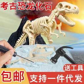考古挖掘恐龙化石拼装骨架手工diy敲挖宝石宝藏男孩...