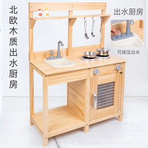北欧风原木色木制可出水厨房玩具套装仿真厨具角色扮演...