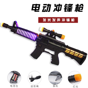 厂家3382电动音乐枪儿童玩具冲锋枪灯光音乐地摊玩...