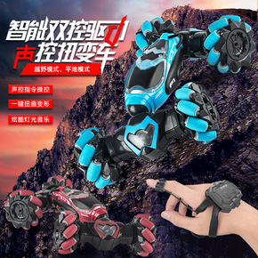 大号双控扭变车智能语音充电声控灯光音乐手表遥控平跑...