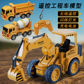儿童6通遥控一键变形汽车机器人工程车男孩玩具搅拌车...