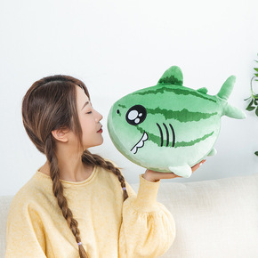 抖音创意搞怪西瓜鲨鱼抱枕公仔毛绒玩具大号女生睡觉床...