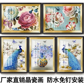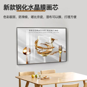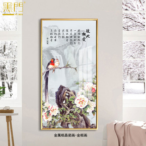 黑门玄关画晶瓷画客厅书房铝合金框大幅画金属框晶瓷画...
