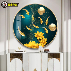 厂家批发轻奢九鱼招财入户玄关装饰画晶瓷画客厅挂画圆...