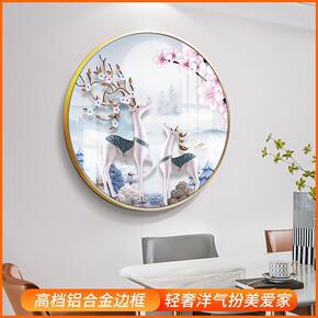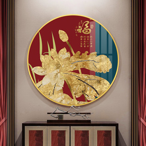入户玄关装饰画创意圆形客厅装饰画中国风新中式挂画轻...