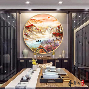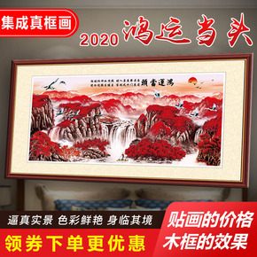 鸿运当头山水画客厅挂画背景墙装饰字画旭日东升办公室...