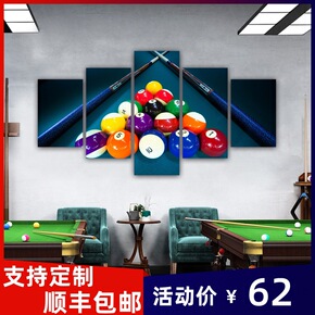 台球厅桌球室俱乐部五联拼画娱乐运动项目背景墙海报装...