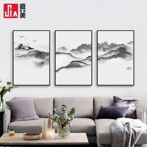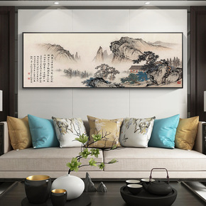 新中式装饰画中国风有靠山水画字画办公茶室背景墙壁客...