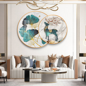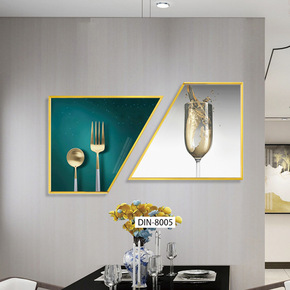 客厅餐厅两联镶钻晶瓷画轻奢现代简约客厅装饰画梯形异...