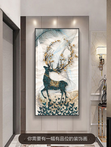 入户玄关装饰画寓意好福禄招财竖版轻奢走廊过道壁画大...