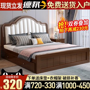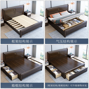 2022新款榉木实木床1.8米大床双人床1米5现代...