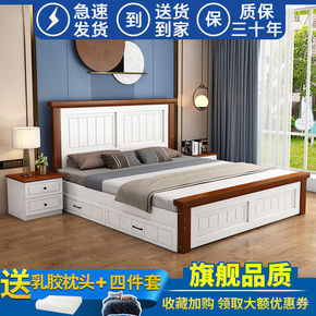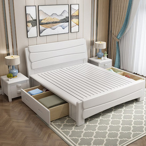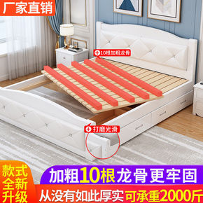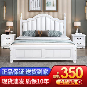 白色主卧实木床1.8米现代简约经济型美式韩式田园公...