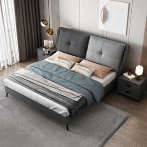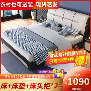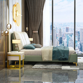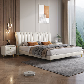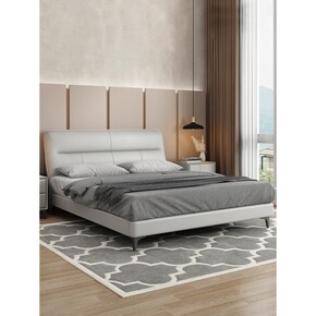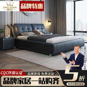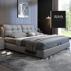 真皮床现代简约轻奢主卧大床高端大气1.8米小户型家...
