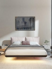 悬浮床极简约现代床主卧网红羽绒软包意式轻奢真皮双木...