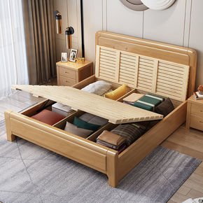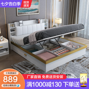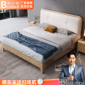 现代简约实木床 北欧卧室ins多功能储物软靠床1....