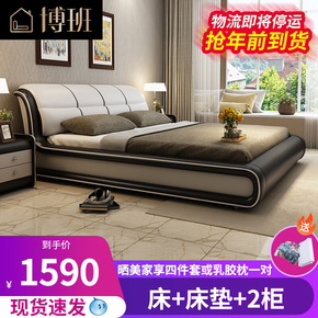 郭瀚意式皮艺床主卧现代简约榻榻米1.8米1.5米高...
