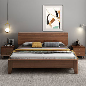 简约风升级北欧轻奢胡桃木实木床现代简约1.2m1....