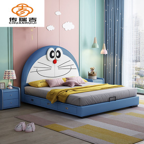 儿童床现代简约卡通1.5m皮床网红储物科技布床小户...