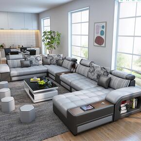 布艺沙发 客厅简约现代大小户型L型 转角贵妃家具组...