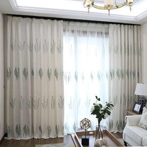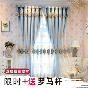 窗帘遮光卧室北欧简约客厅大气绣花新款欧式窗帘成品双...