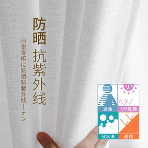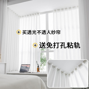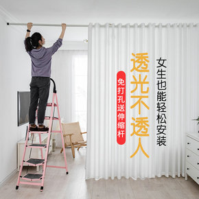 窗帘纱帘透光不透人免打孔安装卧室隔断阳台门飘窗白色...