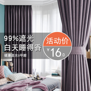 窗帘卧室遮光成品简约ins客厅家用出租房隔热布落地...