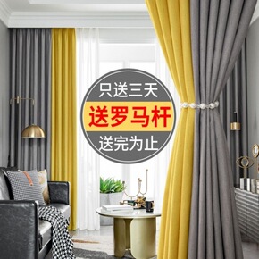 窗帘遮光全套送杆加厚遮阳ins风客厅卧室飘窗阳台简...