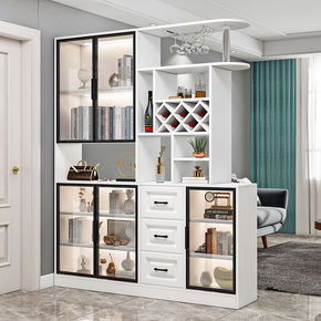 屏风隔断置物架客厅简约现代新中式实木双面酒柜入户进...