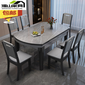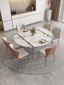 岩板餐桌可变圆桌转盘圆形伸缩旋转现代简约小户型方圆...