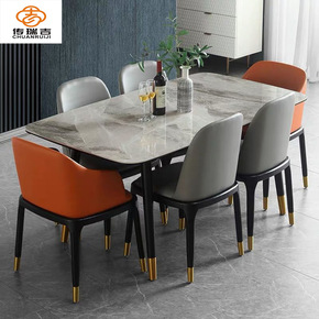 亮光岩板餐桌椅组合小户型客厅实木方桌现代简约长方形...