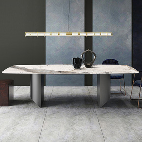 简约亮光岩板餐桌现代小户型客厅家用长方形饭桌大理石...