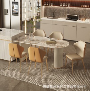 轻奢家用亮光面岩板岛台桌子现代简约设计师款餐厅半圆...