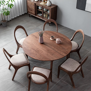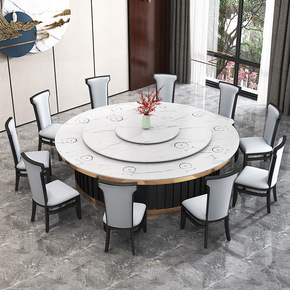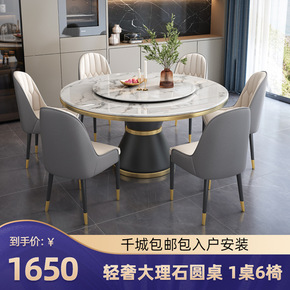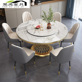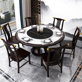 新中式全实木岩板餐桌椅组合现代简约大理石圆形饭桌家...