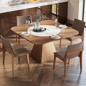 实木正方形餐桌带嵌入式转盘家用餐桌吃饭桌子酒店方形...