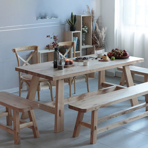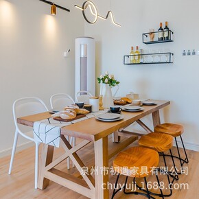美式复古原木餐桌椅 客厅餐厅实木白蜡木长条桌家用一...