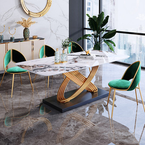 后现代轻奢大理石餐桌椅组合套装北欧创意不锈钢桌子高...