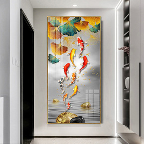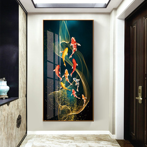 九鱼图轻奢客厅挂画新中式入户玄关画过道走廊装饰画铝...