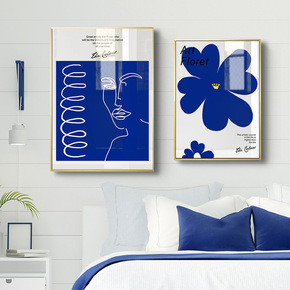 克莱因蓝色花朵图案抽象文艺装饰画北欧客厅卧室墙挂画...