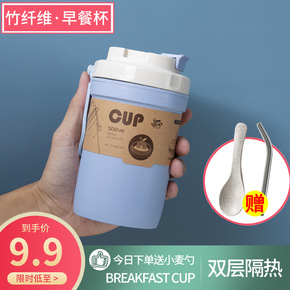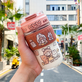 双层隔热玻璃水杯子带盖咖啡杯随行办公室女生便携耐高...