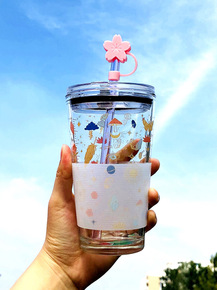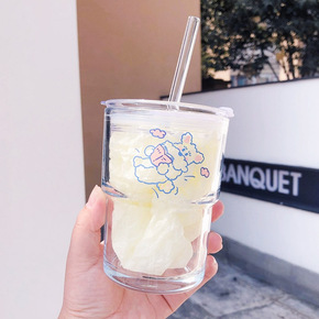 玻璃杯大容量办公室便携2020新款潮仙女孩可爱带吸...