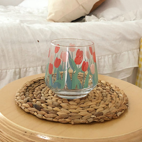 日韩森系风印花刻度牛奶吸管杯玻璃水杯果汁杯咖啡茶可...