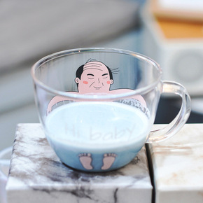 大叔泡澡杯子玻璃杯 ins生日玻璃水杯牛奶咖啡杯早...