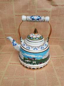 民族珐琅搪瓷壶家用烧水壶策马奔腾 草原图酥油壶...